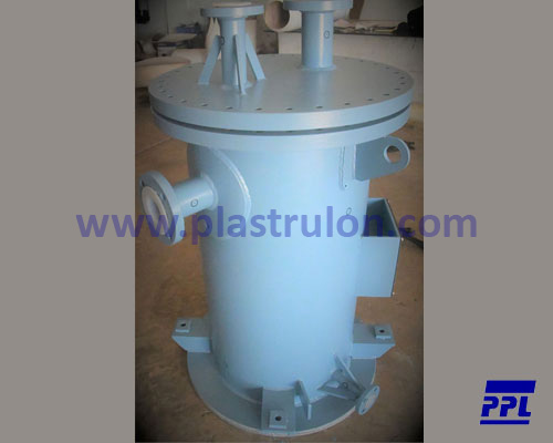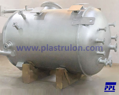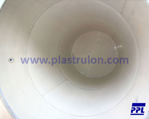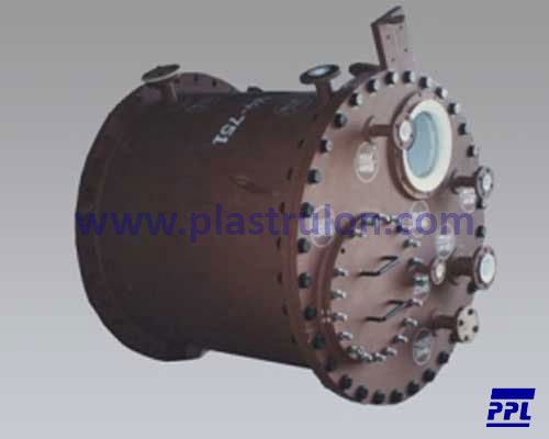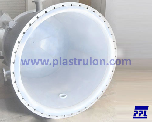 PLASTRULON manufactures Vessels, tanks, reactors and columns etc from 300 mm dia. onwards with PTFE, PFA, FEP ,PVDF or PP lining. Either Loose or bonded lining can be provided. Shell lining in PFA, FEP, PVDF, or PP is loose or bonded sheet lining . Shell lining in PTFE can be seamless upto 1500 mm dia. or seam welded from 400 mm dia. and above. Column / vessel sections are maximum 1500mm in height. Nozzles are either flange jointed or with welded nozzle lining.