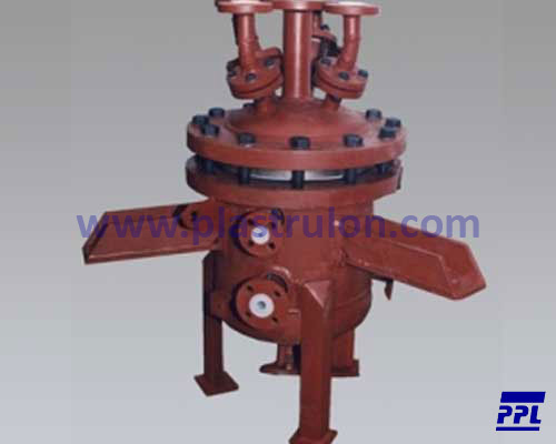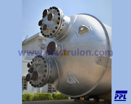 PLASTRULON manufactures Vessels, tanks, reactors and columns etc from 300 mm dia. onwards with PTFE, PFA, FEP ,PVDF or PP lining. Either Loose or bonded lining can be provided. Shell lining in PFA, FEP, PVDF, or PP is loose or bonded sheet lining . Shell lining in PTFE can be seamless upto 1500 mm dia. or seam welded from 400 mm dia. and above. Column / vessel sections are maximum 1500mm in height. Nozzles are either flange jointed or with welded nozzle lining.